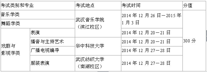 湖北省2015年藝術類(lei)全省統考的考試時間定于2014年12月舉行,具(ju)體考試時間以準考證上時間為準: